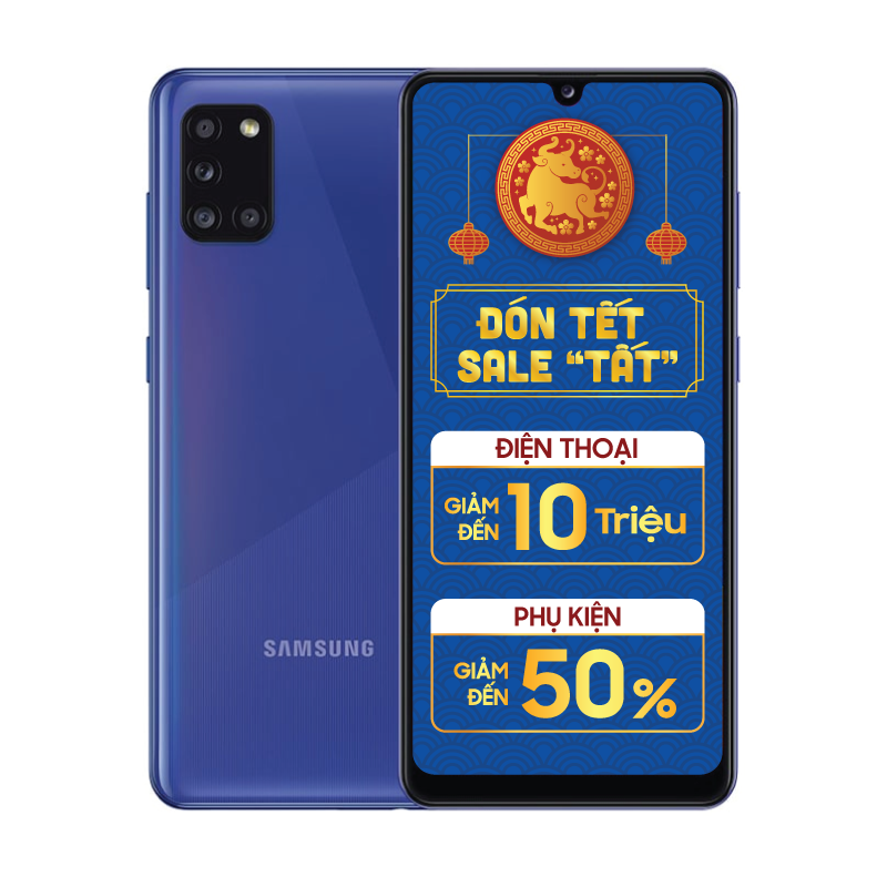 Samsung Galaxy A31 sở hữu thiết thời thượng, màn hình 6.4 inch, độ phân giải Full HD+, hiệu năng mạnh mẽ với bộ vi xử lý Helio P65, là smartphone phù hợp với người dùng thích máy trẻ trung, màn hình rộng.
